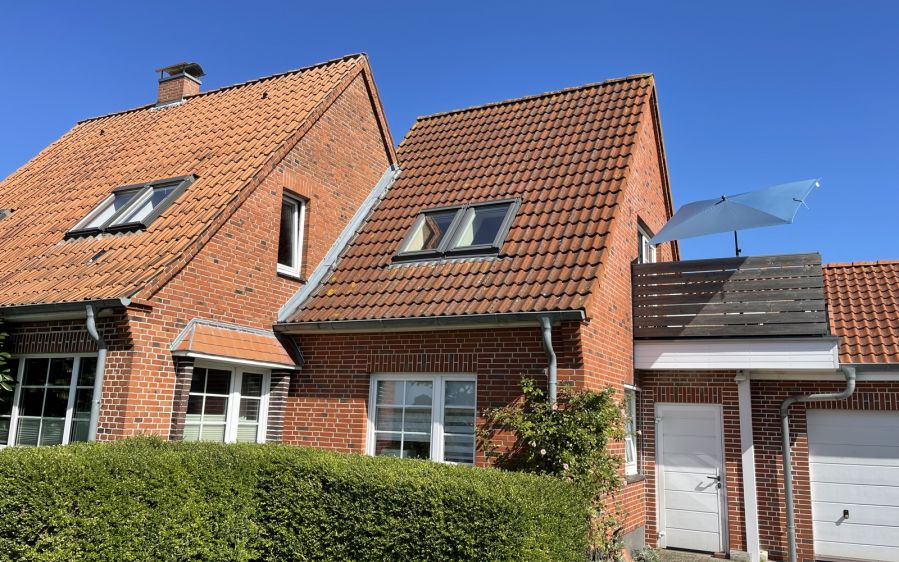 Das ganze Jahr über bieten wir unseren Gästen eine gemütliche Ferienwohnung im Dachgeschoss für 2 bis 4 Personen. Im Wohnzimmer, das mit einem großen Sofa ausgestattet ist, findet sich versteckt hinter einer Trennwand ein Doppelbett. Ein separate Schlafzimmer hat zwei Einzelbetten. Die Küche ist sehr gut ausgestattet, hat auch einen Geschirrspüler. Das Bad ist komplett neu, unter anderem mit einer begehbaren Dusche und einer Waschmaschine. Auf dem Balkon ist Platz für zwei Sonnenliegen. Ein Parkplatz gehört ebenso zur Fewo.